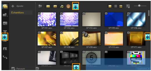 3. Panneau Bibliothèque : contient la bibliothèque multimédia et la zone Options.
