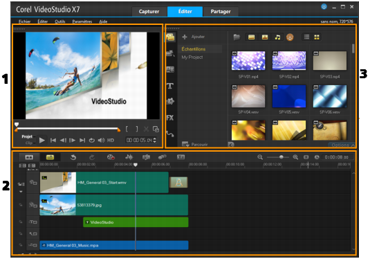 1. Panneau Lecteur : contient la fenêtre d'aperçu et la zone de navigation.