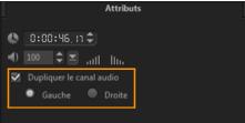 dans la barre d'outils. Cliquez sur l'onglet Attributs et sélectionnez Dupliquer le canal audio. Choisissez le canal audio à dupliquer : le gauche ou le droit.