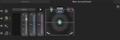 Le mélangeur de son multicanal possède tous les contrôles nécessaires pour positionner les sons autour de l'auditeur, en sortant l'audio sur la configuration 5.1 de haut-parleurs multiples. Vous pouvez également utiliser le mélangeur pour ajuster le volume des fichiers stéréo et donner l'impression que l'audio bascule d'un haut-parleur à l'autre.