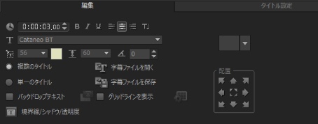 オプション パネルの[編集]タブと[属性]タブのさまざまなオプションを使用してタイトルクリップのプロパティを変更します。 |