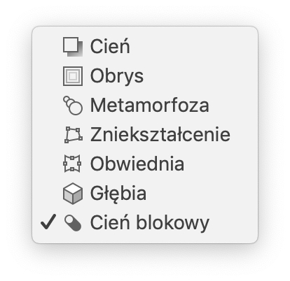 Domyślnie cień blokowy jest generowany z obrysu obiektu. Można także zdecydować się na zignorowanie obrysu i rozpoczęcie cienia blokowego od krawędzi obiektu. Efekt tej opcji jest lepiej bardziej oczywisty, gdy obiekt zawiera gruby obrys. Dodatkowo można rozszerzyć cień blokowy generowany z obrysu obiektu.