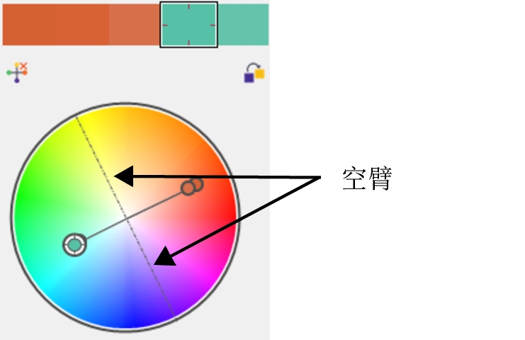 此外,还可以显示较大的色样,并且还可以在和谐编辑器中查看颜色和谐中的空臂。