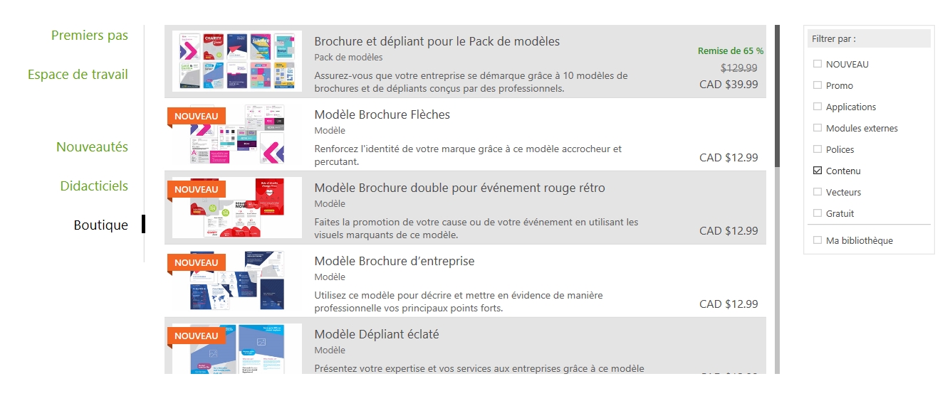 La boîte de dialogue Plus vous permet de télécharger des cliparts, des photos, des polices, des applications, etc.