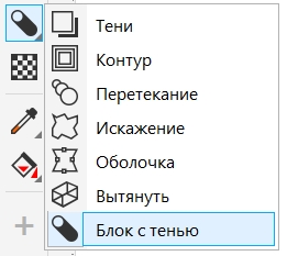 Инструмент Блок-тень расположен в выпадающем меню Интерактивный инструмент.