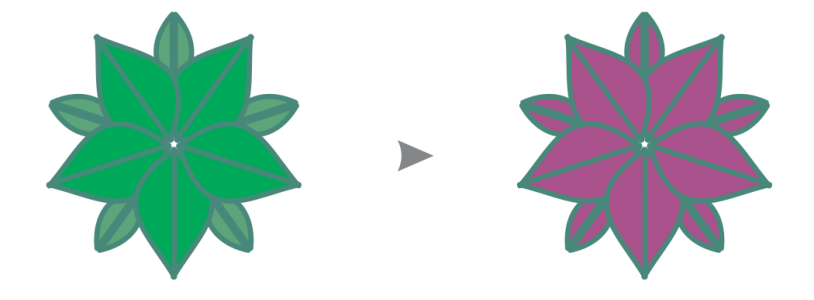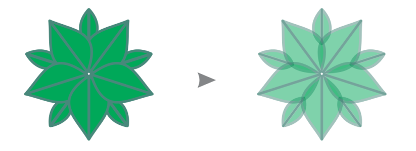 您可以套用填色、效果以及透明度至主要物件。您在主要物件上所做的任何變更,都會反應在物件複本上。您可以新增物件至對稱群組,並且刪除不再需要的物件。此外,即使群組不在「編輯對稱」模式下,您仍舊可以拖曳物件至對稱群組中。