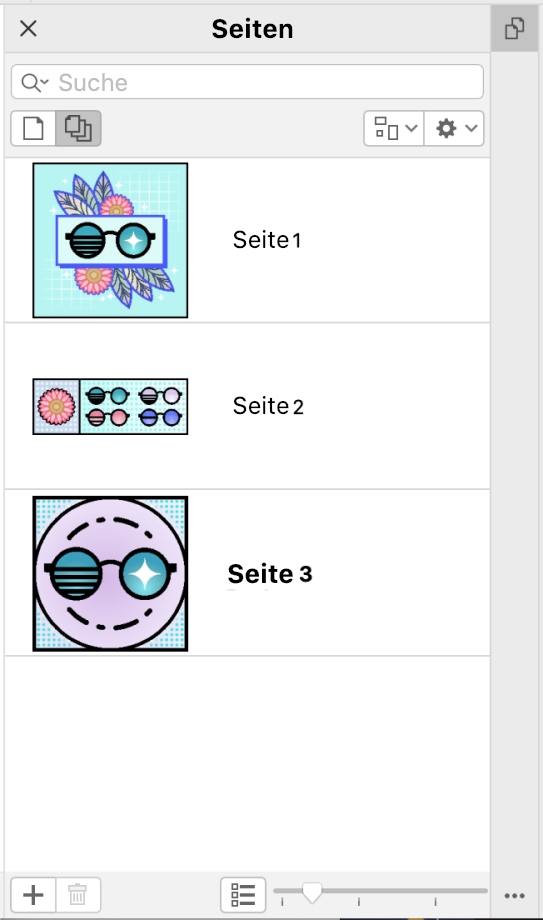 Mit wenigen Klicks können Sie Seiten oder Objekte in branchenübliche Formate (inklusive PDF) übertragen. Dasselbe Designelement kann gleichzeitig mit verschiedenen Einstellungen exportiert werden, indem Sie es im Informationsfenster Exportieren duplizieren und die Ausgabeoptionen ändern. Sie können auch mehrere Elemente gleichzeitig exportieren und für alle die gleichen Einstellungen verwenden. Weitere Informationen finden Sie unter Objekte und Seiten exportieren.