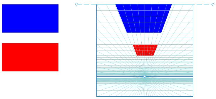 Das rote Rechteck ist weiter von der Kameralinie entfernt und erscheint deshalb kleiner als das blaue Rechteck.