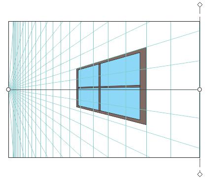 Sie können die Objekte in einer perspektivischen Gruppe auch mithilfe des Hilfsmittels Form umformen und bearbeiten. Wenn Sie Objekte in einer perspektivischen Gruppe zeichnen und bearbeiten, ist die Ausrichtung an den Perspektivenlinien (Ansicht