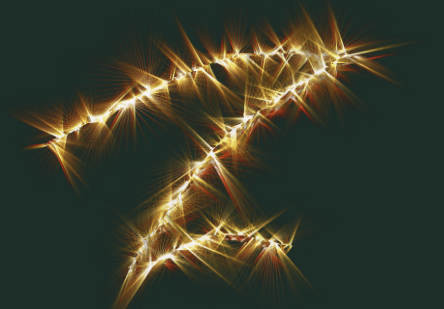 Physikalisch inspirierte Malwerkzeuge, die von einem zentralen Punkt aus Partikel abgeben, die auf ihrem Weg über die Leinwand ein Muster von Linien (Pfaden) entlang eines Strichs erzeugen.