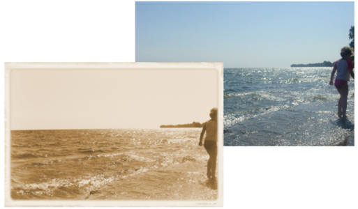 Efekt Tonowanie sepią (Efekty Aparat Tonowanie sepią) umożliwia imitowanie efektu uzyskanego podczas robienia zdjęć na kliszy sepiowej. Obrazki w odcieniu sepii są podobne do zdjęć czarno-białych (zwanych także zdjęciami w skali szarości), ale ich tonacja jest brązowa, a nie szara.
