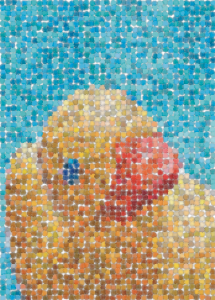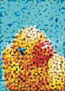 Efekt Mozaika (Efekty Kreatywne Mozaika) umożliwia podział obrazka na nierówne eliptyczne części, dzięki czemu uzyskuje się wrażenie mozaiki. Można określić rozmiar części oraz kolor tła. Mozaikę można również umieścić w ramce.