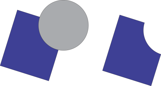 Obiekt docelowy zachowuje atrybuty wypełnienia i konturu. Na przykład przycięcie prostokąta, na który zachodzi koło, powoduje usunięcie obszaru prostokąta pokrytego przez to koło, dając w rezultacie nowy, nieregularny kształt.