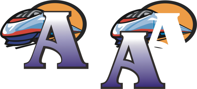Litera „A" to obiekt znajdujący się z przodu, który służy do przycięcia obiektu położonego z tyłu. Na logo pozostaje kształt litery (po prawej).