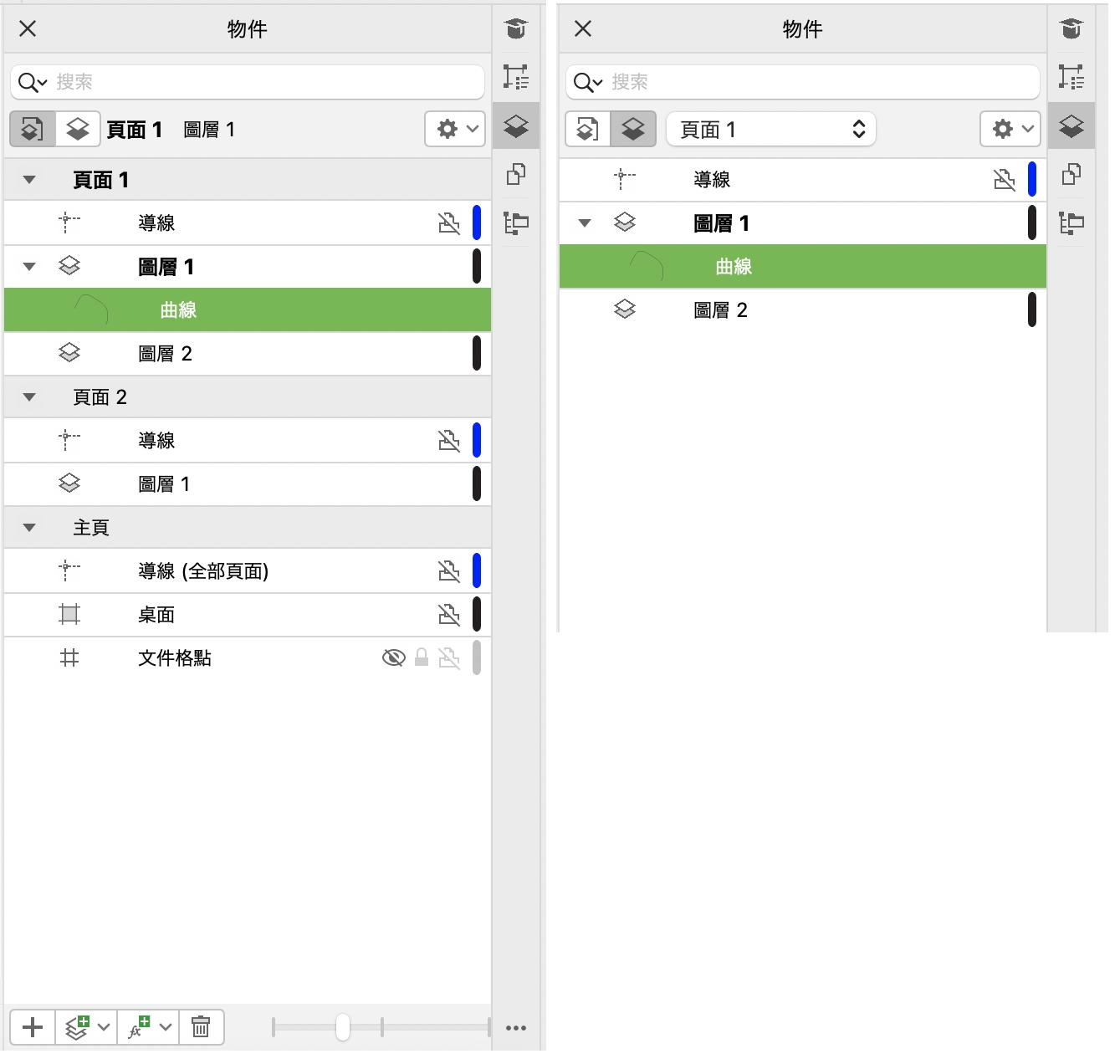 此功能有助于在特定页面上隐藏主图层内容或更改图层堆叠顺序。有关更改图层属性的详细信息,请参阅更改图层属性.