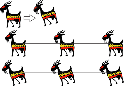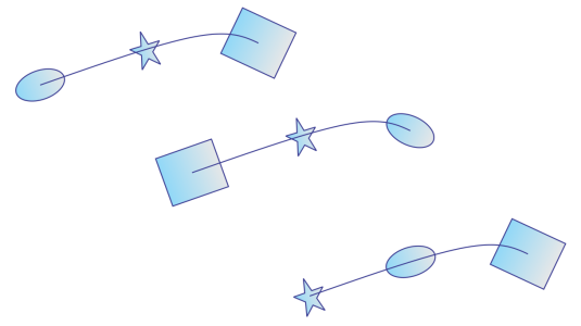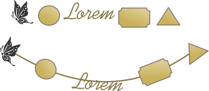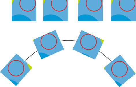 Oben: Das originale Clipart wird gedreht. Mitte: Es wird entlang einer geraden Strecke angeordnet, die angewendete Drehung wird jedoch ignoriert. Unten: Das Clipart wird entlang der Strecke angeordnet und die Drehung wird beibehalten.