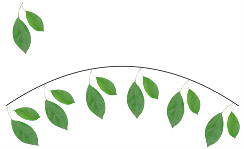 Abstandverfahren „Objektursprung". Der Objektursprungspunkt wird geändert, um den Effekt von Blättern, die an einem Ast hängen, zu erzeugen.