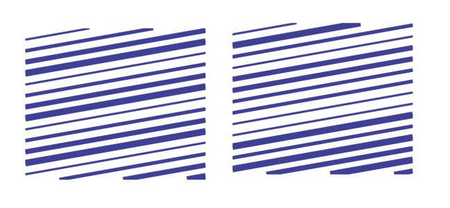 Links: Der Effekt beinhaltet zwei alternierende Arten von Linienabständen: maximal und minimal. Mitte: Weitere Variationen des Linienabstands (Abstand-Stufen) wurden hinzugefügt. Rechts: Die Variationen des Linienabstands erscheinen in zufälliger Reihenfolge.