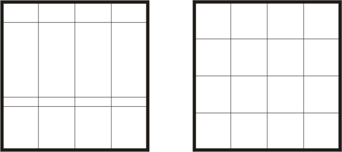 Table rows and columns of different sizes (left) are distributed evenly (right).