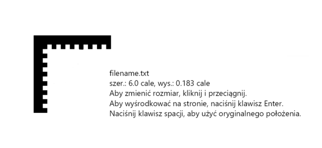 Wskaźnik importowania tekstu umożliwia umieszczenie tekstu na stronie rysunku.