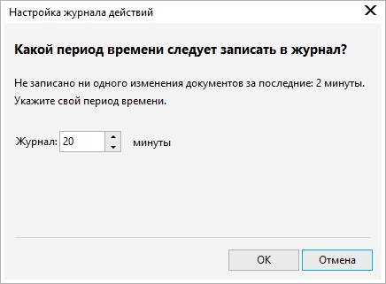 Диалоговое окно «Настройка журнала действий»