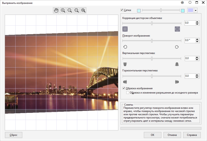 Диалоговое окно Выпрямить изображение