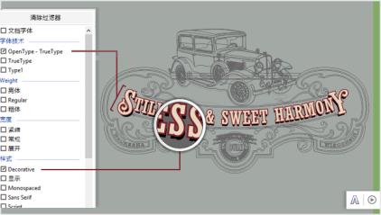 标准功能:您可以使用全新的显示过滤器按钮轻松地访问先前版本中所提供的字体过滤器。您可以只显示文档中使用的字体,或者只显示符号字体,也可根据字体技术过滤字体。