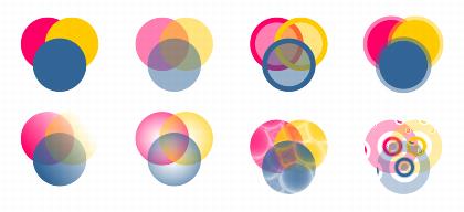 CorelDRAW permette inoltre di stabilire come combinare il colore dell'oggetto trasparente con quello dell'oggetto sottostante, sfruttando le modalità unione.