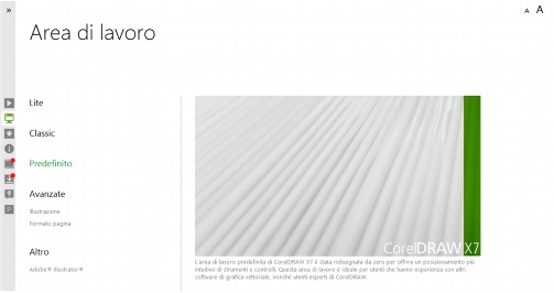 Progettate per aiutare i nuovi utenti ad abituarsi alla suite più rapidamente, le nuove aree di lavoro Lite per CorelDRAW X7 e Corel PHOTO‑PAINT X7 offrono opzioni essenziali e pratiche in termini di navigazione per le caselle degli strumenti e le barre delle proprietà. Le aree di lavoro Lite sono state progettate per rendere gli strumenti più utilizzati dell'applicazione accessibili con maggiore rapidità e più semplici da trovare.