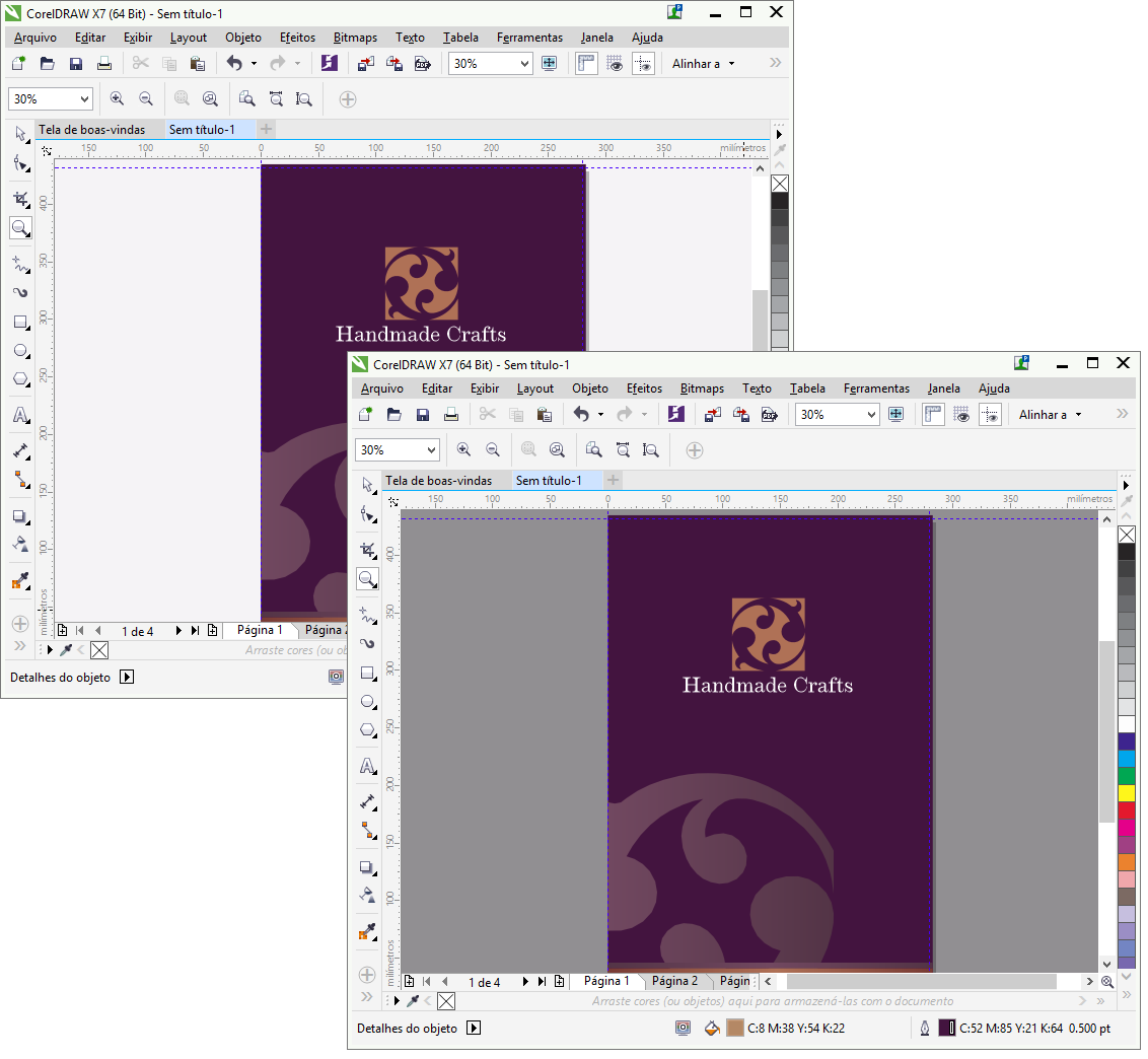 É possível alterar a cor da área de trabalho, a área ao redor da página de desenho para satisfazer as necessidades de seus documentos. Por exemplo, se o documento for composto por cores escuras, a cor da área de trabalho pode ser alterada de branco para cinza a fim de obter um contraste mais baixo.