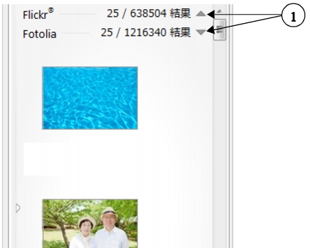 [ライブラリ] ペインでオンライン コンテンツ プロバイダをクリックし、 [検索結果] リスト ボックスから数値を選択します。この値によって、表示ペインに表示される検索結果数の初期値と、 [追加] をクリックするたびに表示される追加検索数の初期値が決まります。