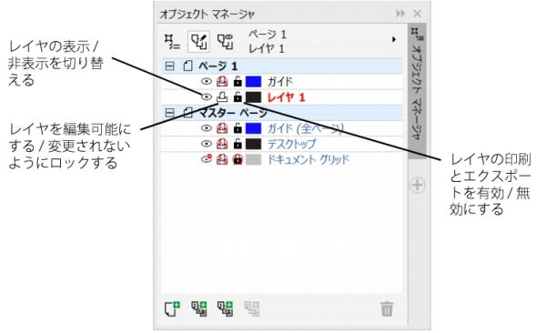 [オブジェクト マネージャ]ドッキング ウィンドウでレイヤを右クリックし、[印刷可能]をクリックして、レイヤの印刷とエクスポートを有効/無効にすることもできます。