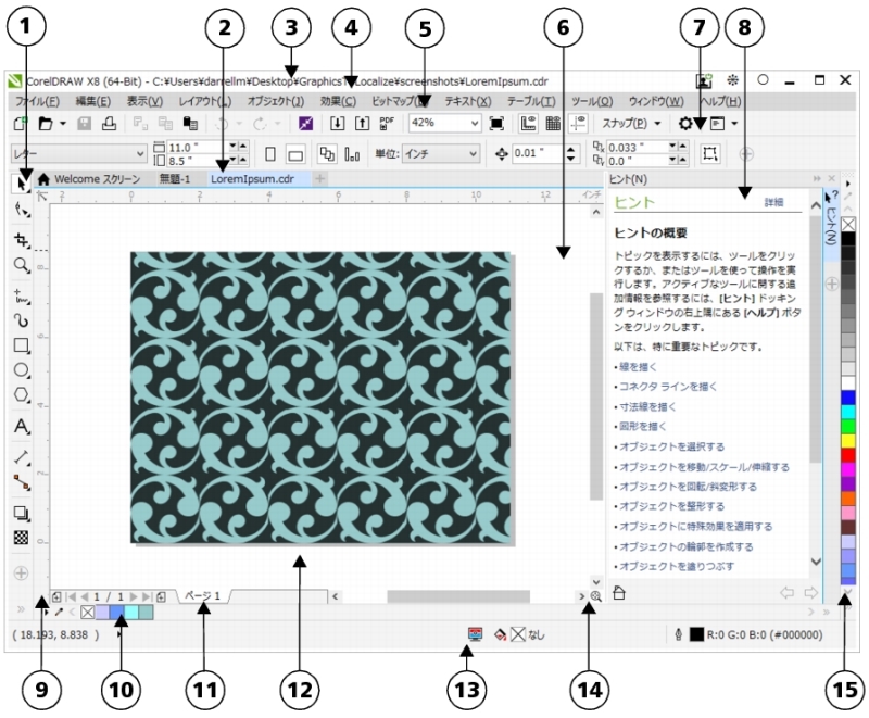 次に CorelDRAW アプリケーション ウィンドウの図を示します。
