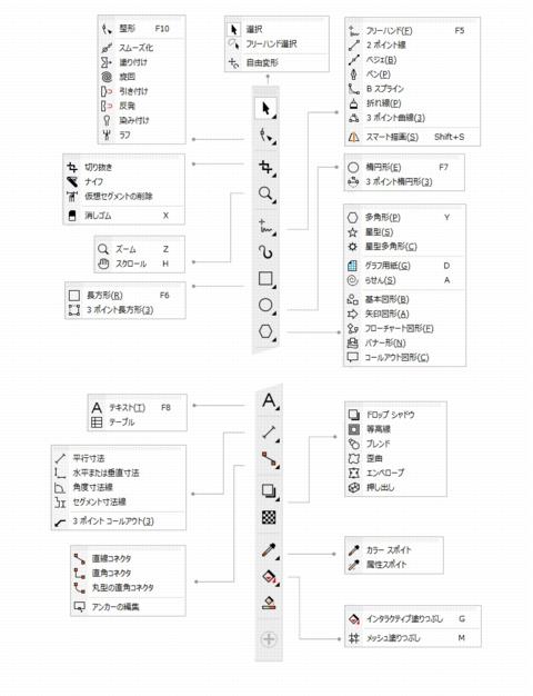 CorelDRAW のツールボックスにあるツールは、次のとおりです。