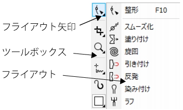 次の図は CorelDRAW のツールボックスのその他のフライアウトを示すもので、これによりツールをより簡単に見つけることができます。