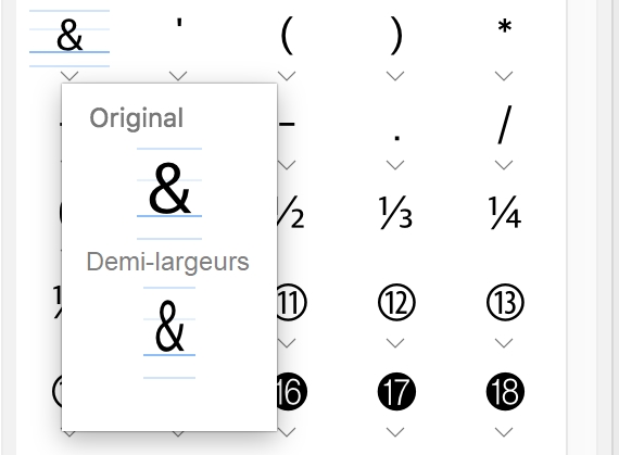 Pour afficher une liste qui contient tous les glyphes disponibles, cliquez sur le bouton