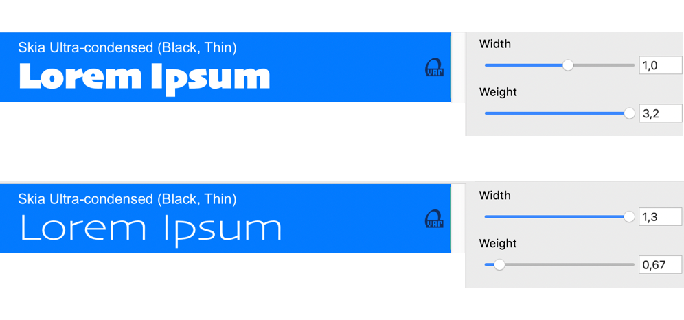 使用 Corel Font Manager 查看并调整可变字体的属性。