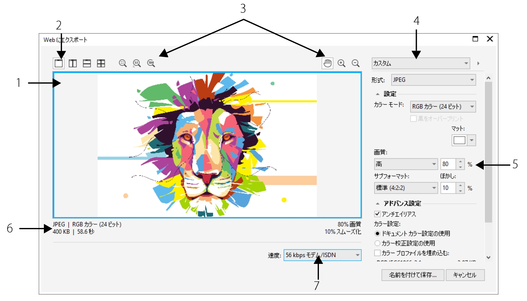 プリセット設定を使用して Web 対応ファイルをエクスポートできます。これにより、ここの設定を変更することなくファイルを最適化できます。また、特定の結果を生み出すために、設定をカスタマイズすることもできます。たとえば、カラー、表示画質、ファイル サイズなどを調整できます。