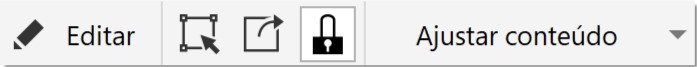 A barra de ferramentas PowerClip permite que você edite, selecione, extraia, bloqueie ou reponha os conteúdos na moldura. A barra de ferramentas é exibida sempre que um objeto PowerClip é selecionado.