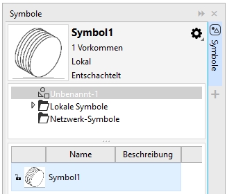 In der Symbolliste werden lokale Symbole mit einem geöffneten Schlosssymbol angezeigt. Das heißt, sie können in der Zeichnung bearbeitet und umbenannt werden.
