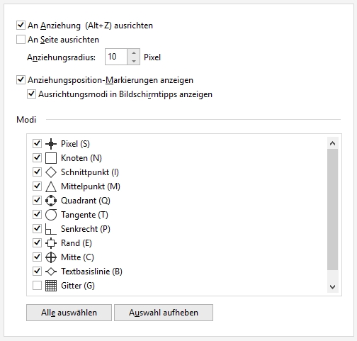 | 2 . | Aktivieren oder deaktivieren Sie die Option An Anziehung ausrichten. |