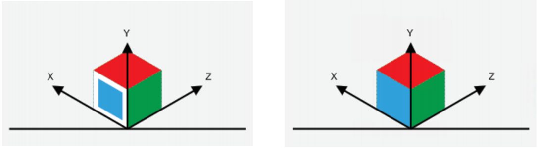 Das Andockfenster Projizierte Achsen weist einen neuen interaktiven Würfel und beschriftete Achsenlinien auf, die die Arbeit mit projizierten Zeichnungen erleichtern. Sie können nun auf den Würfel klicken, um die aktive Zeichenebene zu wählen, oder Sie können sie deaktivieren, um in den senkrechten Modus zu wechseln.
