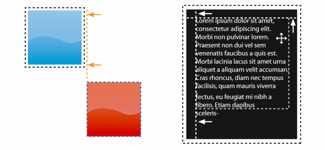 Ausrichtungshilfslinien für Ränder können nach außen (links) oder innen (rechts) versetzt werden.