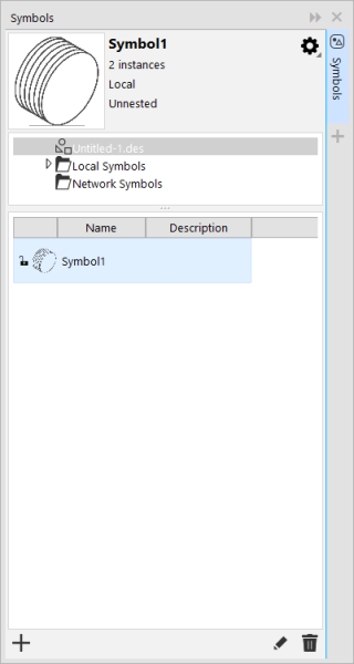 Just below the preview area, a tree view lets you see all linked and local symbol definitions in the active document, including symbols that are not instanced. You can also navigate to symbol libraries.