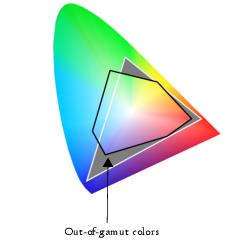 A color management system can perform effective translation of document colors to multiple devices. However, when converting colors from one color space to another, a color management system may be unable to match certain colors. This translation failure occurs because some colors in the source may not fit within the range (or gamut) of the destination color space. For example, the bright red and blue colors that you see on your monitor are often outside the gamut of colors that your printer can produce. These "out-of-gamut" colors can dramatically change the look of the document, depending on how they are interpreted by the color management system. Each color management system has four methods of interpreting out-of-gamut colors and mapping them into the gamut of the destination color space. These methods are known as "rendering intents." The choice of a rendering intent depends on the graphical content of the document.