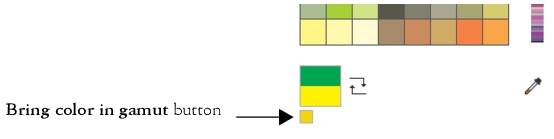 If you choose a color that is out of the printer’s gamut, Corel DESIGNER allows you to replace it with a similar color that is in the printer’s gamut. For more information, see To replace an out-of-gamut color with a reproducible color. For information about color correction, see Color management.