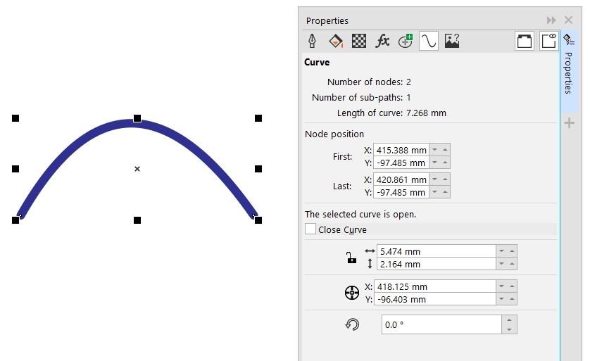 The Properties docker lets you view curve properties such as the number of nodes and subpaths, length as well as node position.