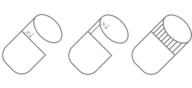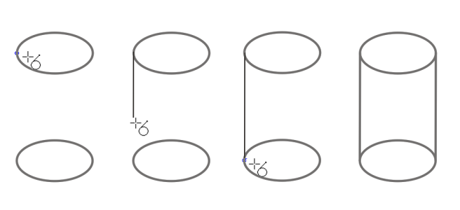 The Tangential 2-point line mode can be used for drawing the sides of the cylinder.