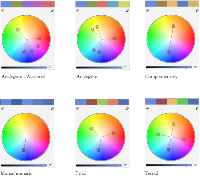 Tetrad — based on a pair of colors and their complements on the color wheel. This rule usually creates bold color harmonies and requires careful planning when used.
