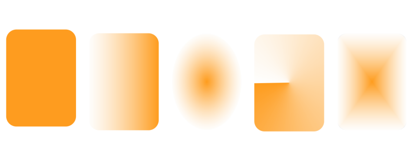 From left to right: Original object with a linear, elliptical, conical, and rectangular transparency applied.